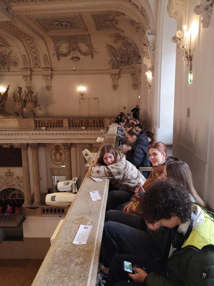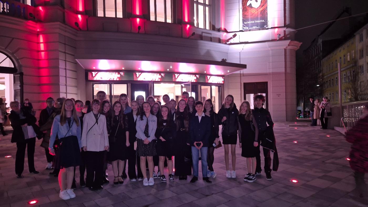 Auch das Abendprogramm war sehr abwechslungsreich. Wir verbrachten nicht nur einen feinen Abend im Prater und besuchten eine professionelle Theateraufführung, nämlich das Stück „Von Mäusen und Menschen“ nach einem Roman von John Steinbeck, wir hatten auch die Möglichkeit, eines der bekanntesten Musicals anzusehen. Deshalb war der Donnerstag-abend ein einmaliges Erlebnis, denn wir besuchten eine Vorstellung des Musicals „Das Phantom der Oper“. Da wir zeitgleich an unserer eigenen Musicalproduktion arbeiteten, war es ein total beeindruckender Einblick in die professionelle Welt des Musicals und wir konnten wirklich sehr viel von der Aufführung für uns selbst mitnehmen.