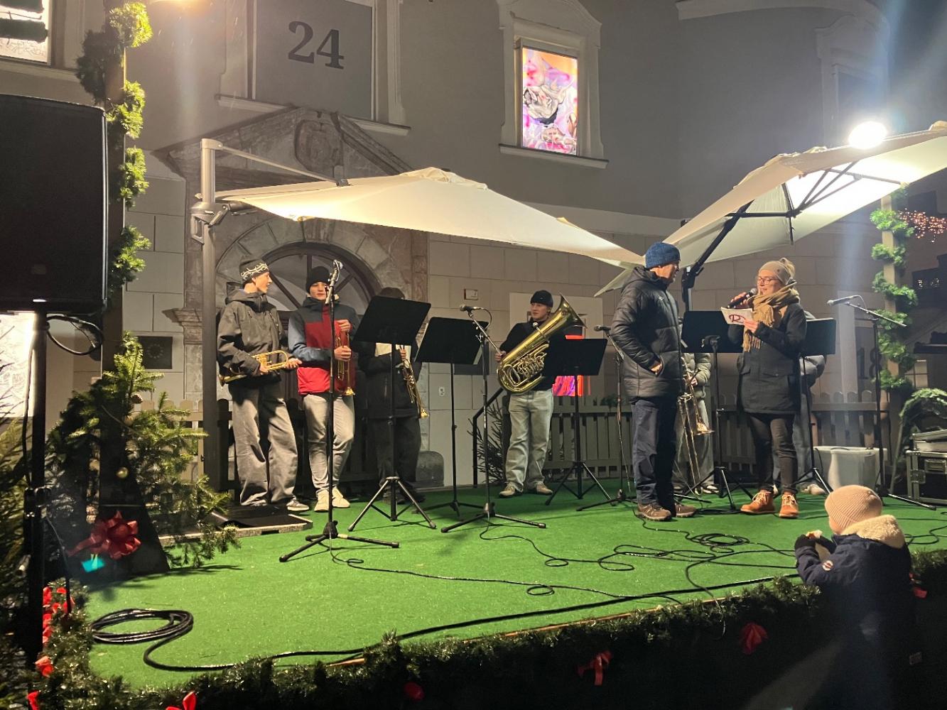 Das Blechbläserensemble des Musik-BORG musizierte am 17.12.2025 bei der Adventkalenderöffnung vor der Liebburg in Lienz. Im Ensembles spielten Matteo Landsfried, Julius Kleinlercher, Clemens Mayr, Michael Ploner, Niklas Walder, Jakob Steiner und Florian Amann.