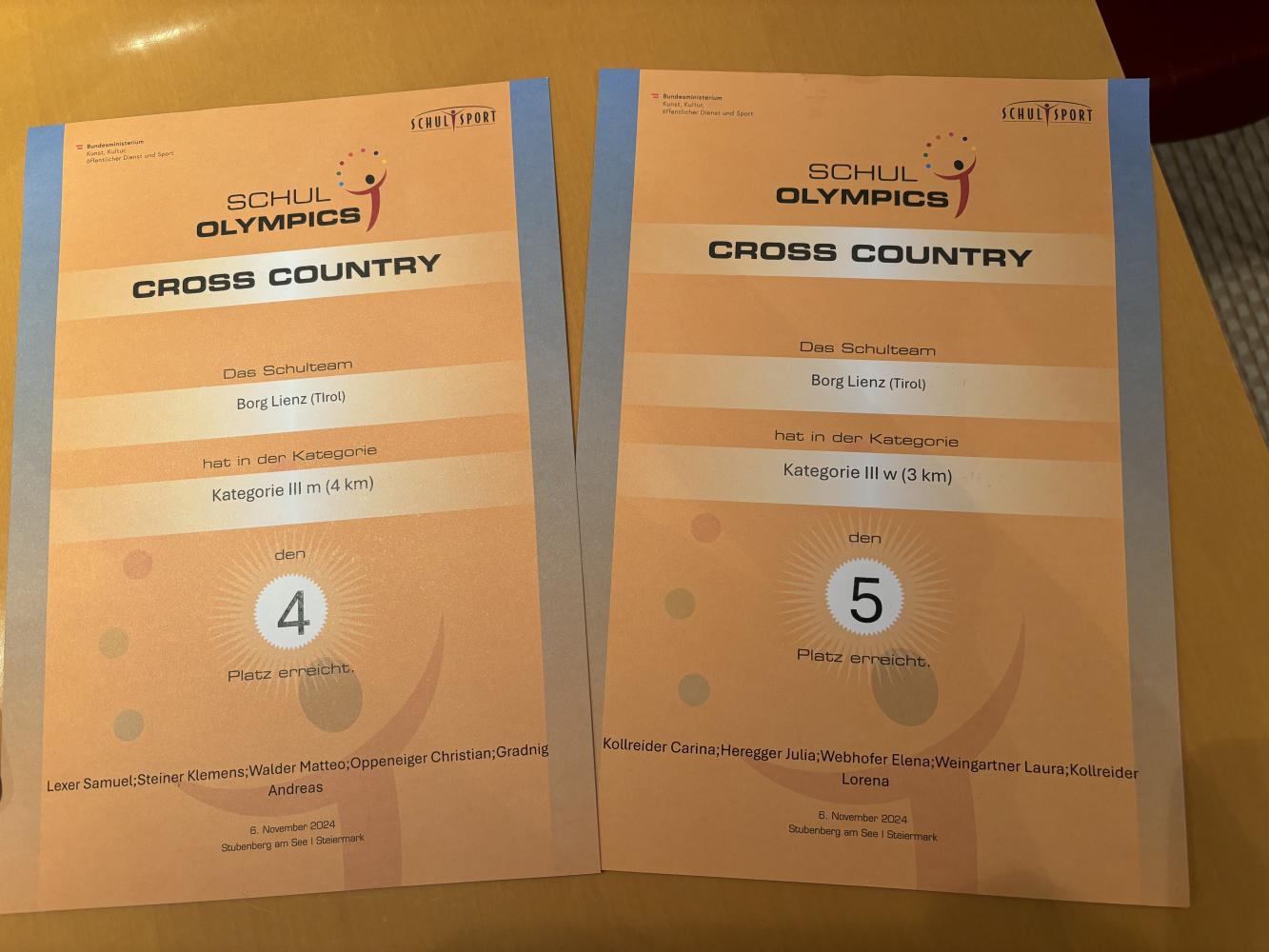 Vergangene Woche fand in Stubenberg am See in der Oststeiermark das Bundesfinale im Cross-Country statt, bei welchem ein Mädchenteam (bestehend aus Carina Kollreider, Julia Heregger, Elena Webhofer, Laura Weingartner und Lorena Kollreider), sowie ein Burschenteam (mit Samuel Lexer, Klemens Steiner, Matteo Walder, Christian Oppeneiger und Andreas Gradnig) des BORG Lienz für das Land Tirol an den Start gingen.
