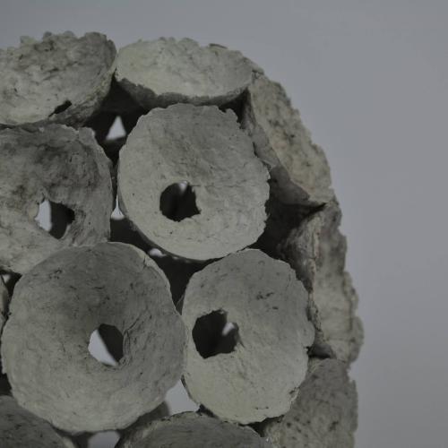 Dabei wurde Zeitungspapier und Karton in Wasser eingeweicht, püriert und mit Kleister zu einer formbaren Pulpe verarbeitet.
