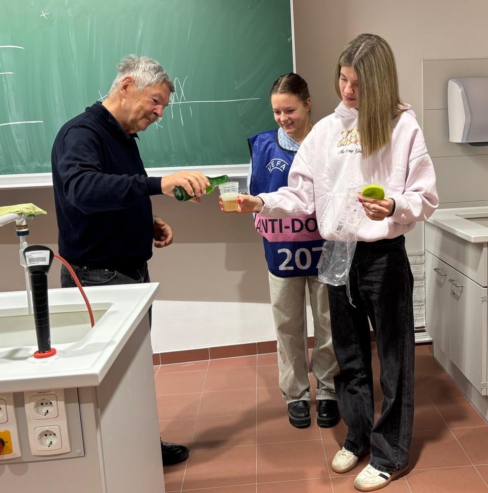 Im Zuge dieser nachgestellten Abnahme einer Urin- und Blutprobe erklärte er Rechte und Pflichten eines Sportlers/einer Sportlerin, sodass wir einen sehr realistischen Einblick in die Arbeit eines Dopingkontrolleurs erhielten.