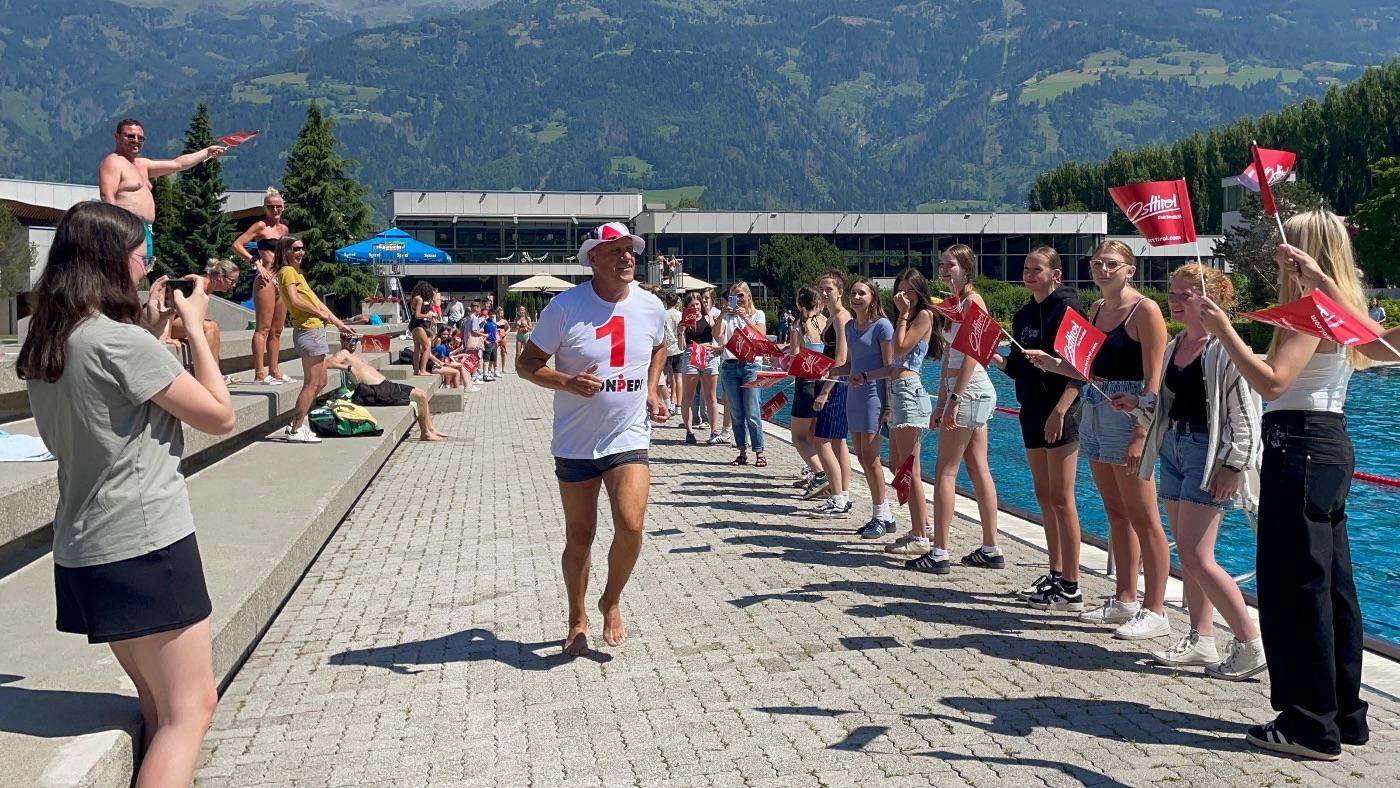 Am 25. Juni 2025 verabschiedeten sich die Sportklassen unserer Schule im Lienzer Schwimmbad von einem ganz besonderen Menschen: dem Gründer des Sportzweiges und langjährigen Sportlehrer – liebevoll bekannt als der „Vater des Sportzweiges“.