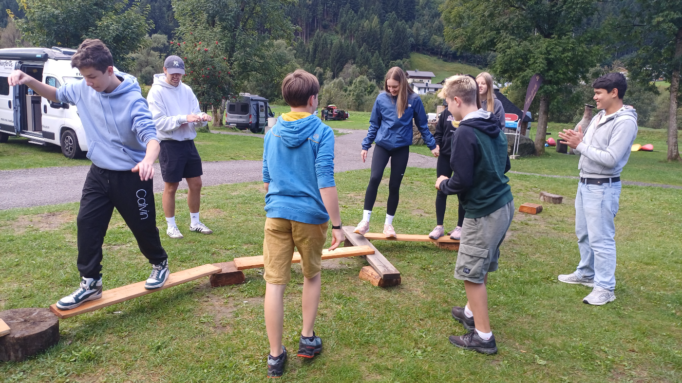 Am 16. 9. 2025 fand für alle 5. Klassen im Rahmen der Welcome Days ein Teambuildingtag im Adventurecamp in Ainet statt. Alle Aktivitäten waren so gestaltet, dass das Einanderhelfen und die Kommunikation im Team im Vordergrund standen.